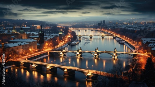 © Ghulam, Fototapeta premium Classic view of Prague at Twilight, panorama of Bridges