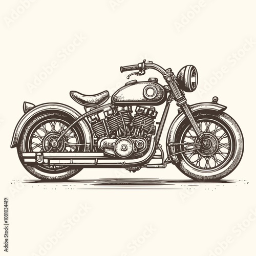 Fototapeta premium Classic Vintage Motorcycle Vector Illustration in Detailed Engraving Style with Retro Aesthetic
