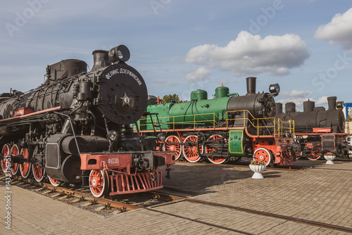 Fototapeta premium Classic vintage retro train trains steam locomotive locomotives in Belarus.