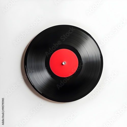 Obraz premium Classic Vinyl Record on White Background with Distinct Grooves and Vibrant Red Label