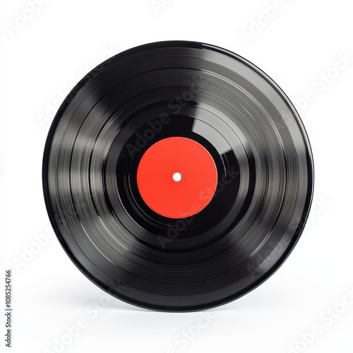 Fototapeta premium classic vinyl record with glossy black finish and vibrant red center, perfect...