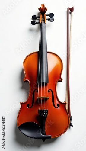 Fototapeta premium Classic violin and bow, pristine white backdrop, instrument, violin