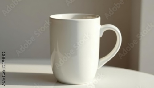 Fototapeta premium Classic white ceramic mug, handle detail visible , blank, design
