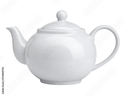 Obraz premium Classic White Ceramic Teapot with Handle and Spout, Front View, isolated on...