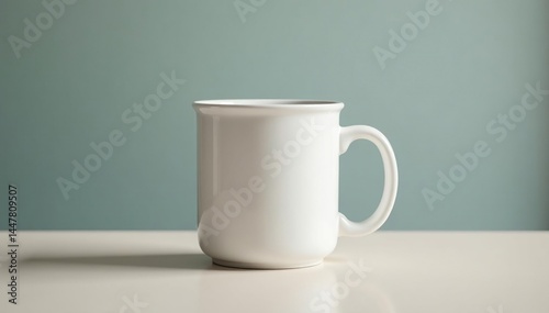 Obraz premium Classic white mug, handle visible, clean background, hot beverage, visual, tea