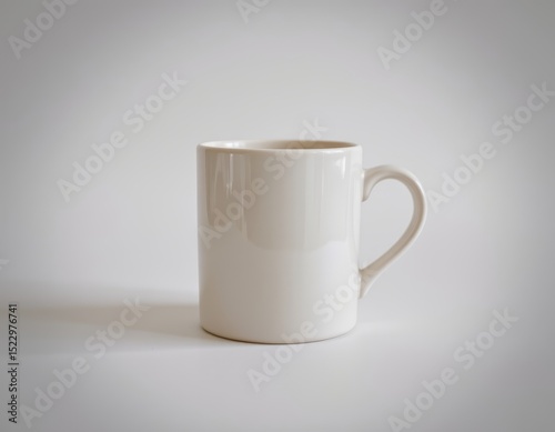 Fototapeta premium Classic white mug on grey background, perfect for mockups and beverage presentations
