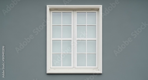 © Store, Fototapeta premium Classic white window with clean lines against a grey wall offers a modern, minimalist architectural detail