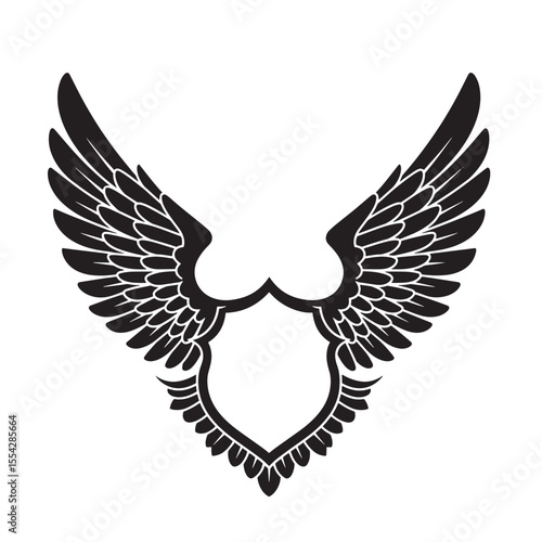 Fototapeta premium Classic wings and shield design a black and white vintage art silhouette...
