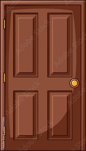 © Vector World, Fototapeta premium Classic wood entry door with golden knob ideal architectural element for home renovation concepts vector