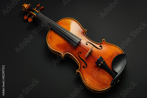 Fototapeta premium Classic Wooden Violin Closeup On Neutral Black Background Created Using...