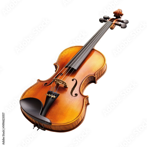 Fototapeta premium Classic wooden violin isolated on Transparent background showcasing craftsmanship and design features, Wooden classic violin isolated on white