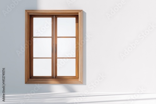 © imagify, Obraz premium Classic Wooden Window Frame with Smooth Finish and Clear View in Bright Daylight Isolated on White Background