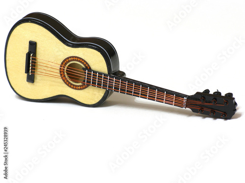 Fototapeta premium Classical acoustic guitar on white isolated background, macro