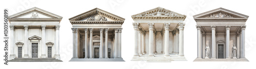 © Jieee Mooo, Obraz premium Classical Architectural Facades with Corinthian and Doric Columns, PNG bundle collection, Isolated on Transparent Background