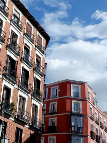 © Yana Demenko, Obraz premium Classical buildings of Madrid community. Spanish architecture. Vertical photo copy space