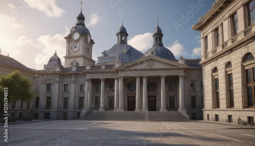 Obraz premium Classical courthouse building with a central clock tower, clock tower,...