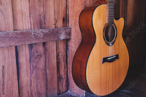 Obraz premium classical guitar on wooden background