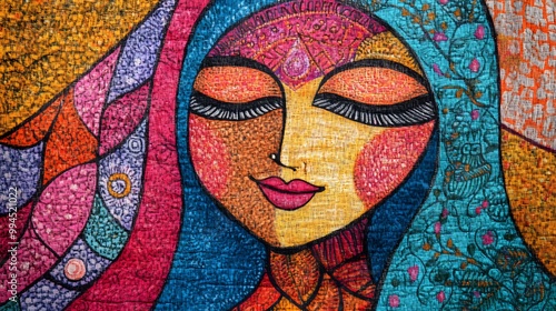 © LeoArtes, Fototapeta premium Classical Madhubani Painting Art, Abstract Image, Texture, Pattern Background, Wallpaper, Cover and Screen for Smartphone, PC, Laptop, 9:16 and 16:9 Aspect Ratio