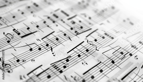 Fototapeta premium Classical Music Score on Piano in Black and White