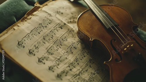 Fototapeta premium Classical music sheet notes elegantly displayed on a wooden stand, embodying...