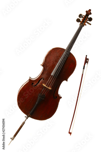 © artmim, Fototapeta premium Classical musical instrument - cello isolated on white