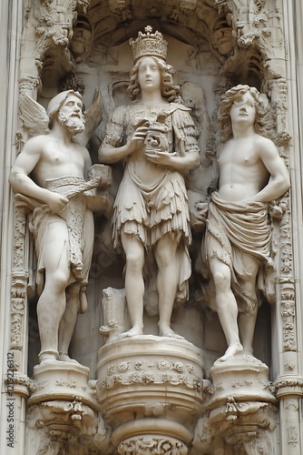 Fototapeta premium Classical Stone Relief: Crowned Figure with Attendants