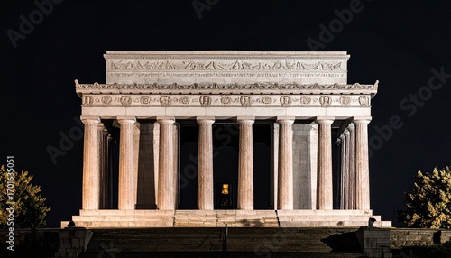 Fototapeta premium Classical temple with Corinthian columns and sculpted pediment on black...