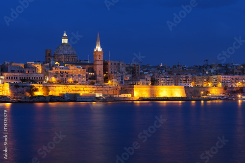 Obraz premium Classical view of Malta's capital, Valletta, after sunset