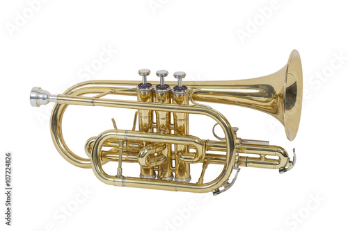 © borisblik, Naklejka premium classical wind musical instrument cornet isolated on white background