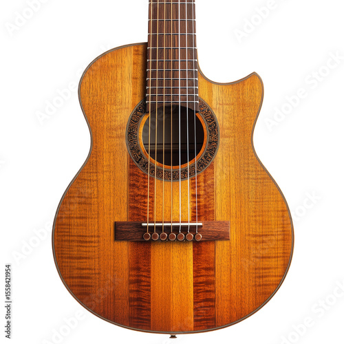 © Olga, Fototapeta premium Classical wooden guitar front view with fine details