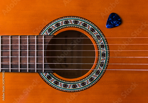 © Cristian Blázquez, Obraz premium Classical wooden guitar strings close up