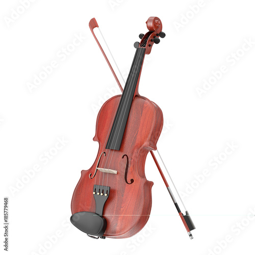 Fototapeta premium Classical Wooden Violin with Bow. 3d Rendering