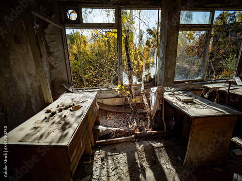 © Beata, Obraz premium Classroom in the abandoned school in Pripyat. Chernobyl Exclusion Zone. Ukraine