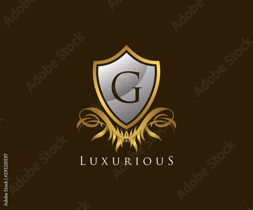 Obraz premium Classy Shield G Letter Logo. Gold Vintage Shield With G Letter prefect for boutique, hotel, restaurant, wedding and other elegant business.