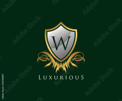 Obraz premium Classy Shield W Letter Logo. Gold Vintage Shield With W Letter prefect for...