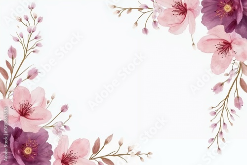 © Max Buddy, Fototapeta premium Classy wedding invitation with plum and light pink blossoms.