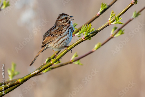 Fototapeta premium Clay-colored Sparrow Singing on Stem