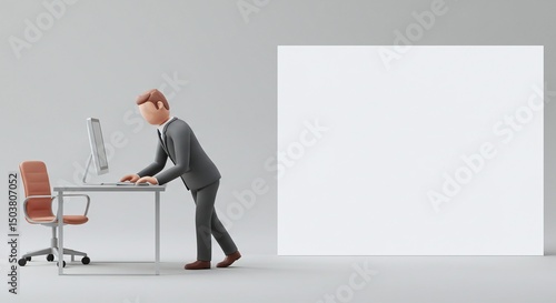 Obraz premium Clay Style 3D Businessman Working with Copy Space on Right Side, Minimal...