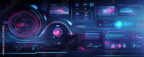 © aicandy, Fototapeta premium clean and minimalistic background with sleek user interface elements and modern technology icons, reflecting the seamless integration of digital interfaces panorama