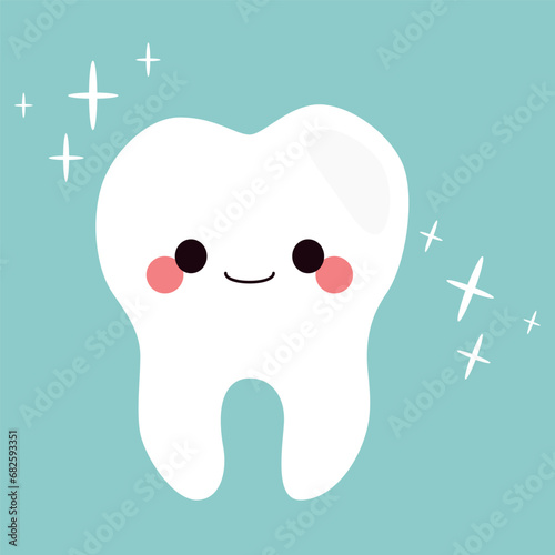 © Dennise, Obraz premium Clean and shiny tooth. Smiling and healthy tooth on blue background