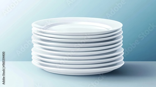© Chingiz, Obraz premium Clean and shiny white plates neatly stacked on a table.