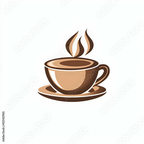 © hajiran , Obraz premium Clean and simple brown coffee cup logo with minimal design and transparent background.