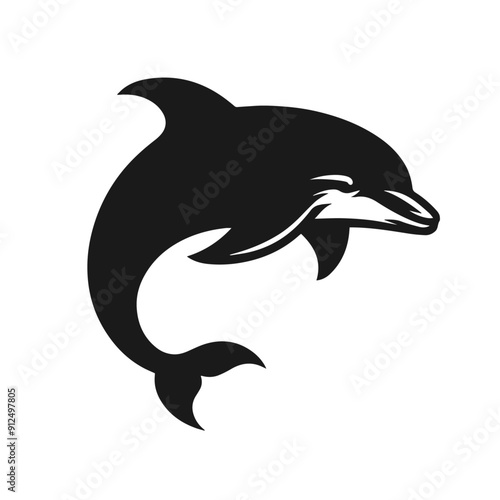Naklejka premium Clean black and white vector silhouette of a dolphin isolated on white...