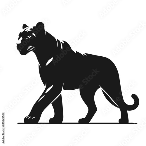 © Awais, Obraz premium Clean Black and white vector silhouette of a Panther on white background