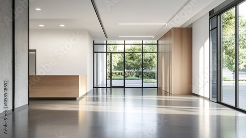 Fototapeta premium Clean Concrete Office Floor with Wooden Counter