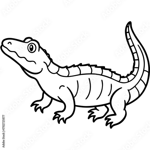 © Motin, Fototapeta premium Clean Dwarf Crocodile Line Art Animal Vector Isolated on White