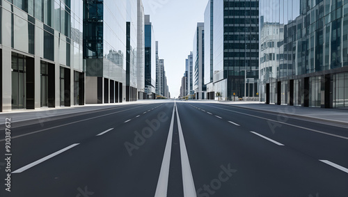 © Ai Creations, Obraz premium clean empty road on modern office buildings in a city