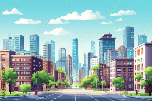 © Mselected, Obraz premium Clean empty street in urban metropolis city
