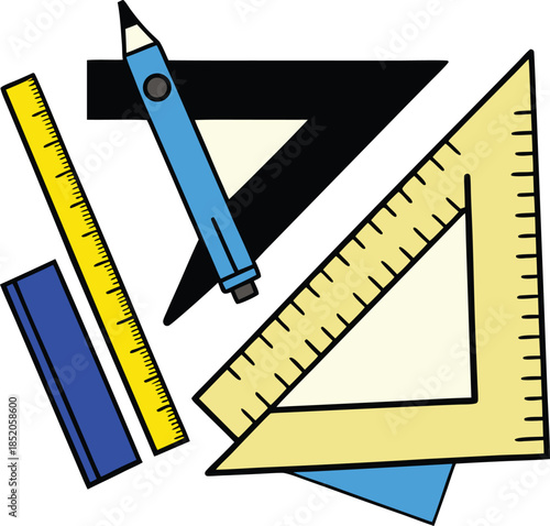 © Naziq, Fototapeta premium Clean geometric tools arranged in hard edge layout