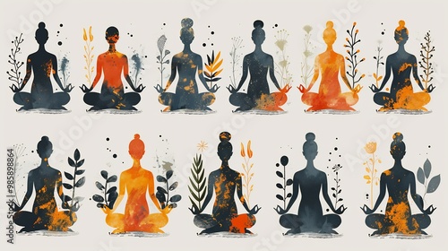 Naklejka premium Clean line art clip art featuring abstract human figures yoga poses with...